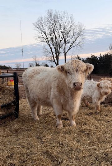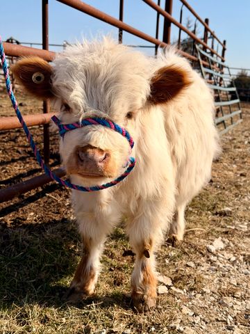 Cotton is a midsize Highland/Whitepark heifer. This girl is downright adorable! I adore her ears and cute nose. This cutie has the fluffy hair the beautiful color and the sweetest personality. She is an amazing pasture pet or future girl to raise up and have babies of her own