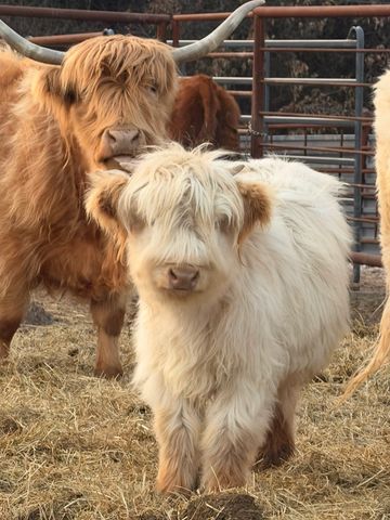 Sandy is a proven full size Highland cow, she should be open, Eve is her baby that can be found a few cows down under sold. Sandy is 48.5 inches tall, she does have crop ear, strictly cosmetic. She is a beautiful cow, just does not fit our program. She is not a pet, never been messed with.